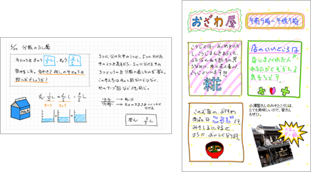 紙とペンのように、子どもが表現したいことをそのままノートに書くことができます。写真や図形の貼り付けや移動も簡単です。