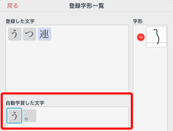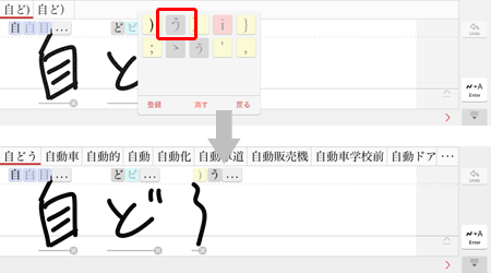 *正しい認識候補が表示されないときは、「消す」をタップして文字を書き直すか、「登録」をタップして字形を登録します。