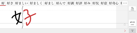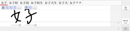 文字の区切りがまちがって認識されたときは、区切りを修正して認識結果を調整できます。うまく調整できないときは、文字(ストローク)を削除して書き直します。
