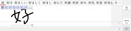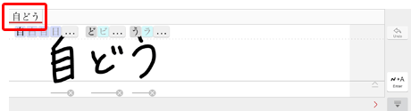 交ぜ書き入力画面で、手書きした内容の上にある認識候補をタップします。