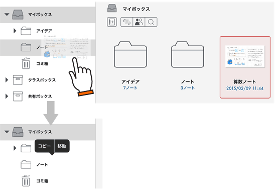 *生徒はクラスボックスのノートを移動できません。