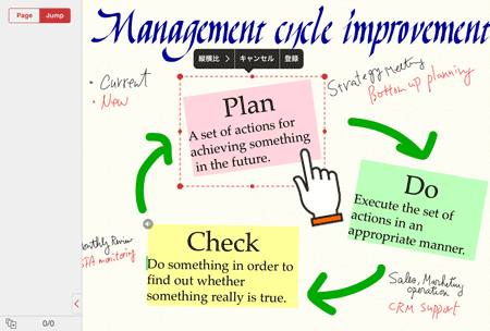 プレゼンテーションをするときに、必要なページだけを見せたり、注目させたいところにズームしたりでき、便利です。