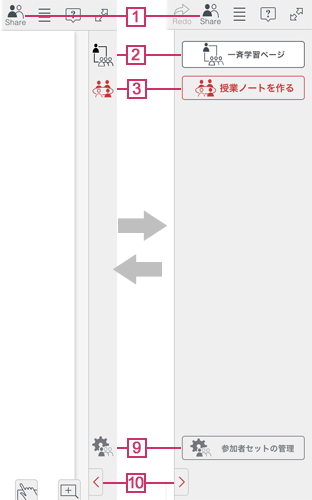 *生徒の場合は、授業ノートを開いているときだけシェアバーが表示されます。