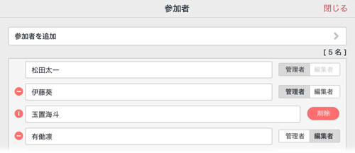 ほかの参加者の追加・削除などの操作をしてもらうには、役割を「管理者」に変更します。
