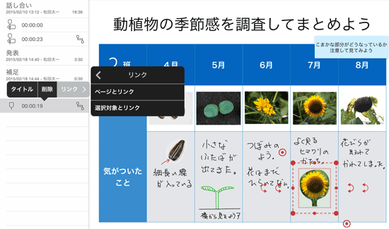 ストロークや写真を選んで、リンクしたチャプターから再生できるようにします。